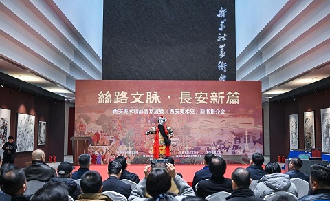 展览开幕式上的秦腔表演12月12日,“丝路文脉·长安新篇”西安美术精品晋京展暨《西安美术史》新书推介会在北京国金大厦新华社美术